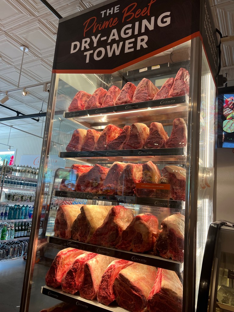 At least you got in a drive to see something different! Cute place to eat for sure, love the USA Flags. And, wow that is a lot of meat!